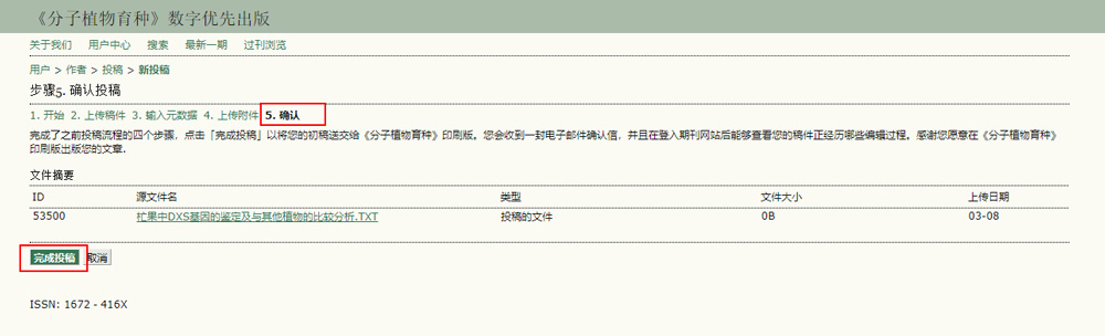 5、确认投稿:本刊投稿第五步,确认投稿成功。